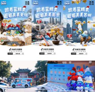 蓝精灵IP的加入,则让江南秋冬更添童趣。抖音生活服务打造蓝精灵主题“美美巴士”,在南京、苏州、无锡三城核心商圈与景区巡游,用户打卡合影、带话题发视频即可领取限定周边与商家优惠券。与此同时,“城市隐藏蓝精灵”打卡活动同步上线,联动40多个商家铺设主题物料,用户跟着巡游地图打卡就能兑换礼品,有效拉动线下交易,12月10日-19日,参与商家扫码核销GMV环比日均增长19.5%。