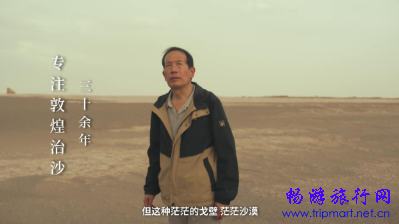 屈建军,中国科学院研究员,专注敦煌治沙30余年。他的世界是80%的戈壁和沙漠。面对茫茫沙海,他感受到的不是荒芜,而是一种巨大的能量感:“敦煌的绿洲只占到5%,但这种茫茫戈壁、沙漠,给人一种能量感。在历史的长河中,人是很短暂的,站在大自然面前,感到什么都好像不存在一样。”