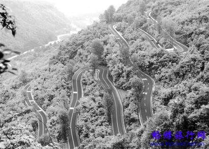 图为:群山叠嶂中的武神公路蜿蜒曲折