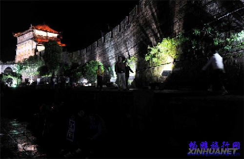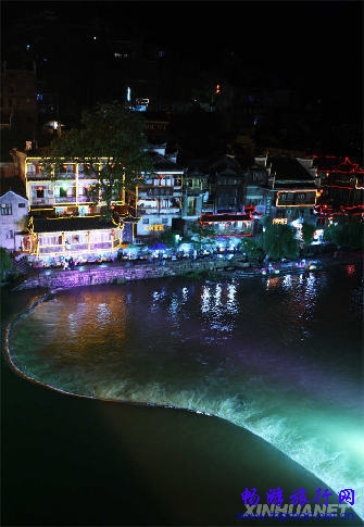 近年来,凤凰县通过积极申办“世界文化遗产”,加大对古城和民族民间文化的保护力度,使古城夜色更加秀美。新华社发(李明摄)