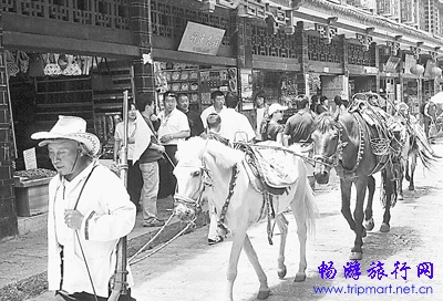 走在古城四方街头的马帮。