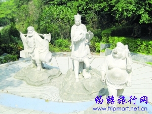 本网讯(海闻 文/图)紫云公园位于石码镇市区南部的紫云山,是一处融休闲、健身、观景、娱乐、度假为一体的综合性公园。昨日,笔者在公园看到有些景点石雕受破坏,最严重的是西游园的石雕:只见那会七十二变的孙悟空,手搭凉篷,眼观八方,走在最前头,但手上的金箍棒不见了;紧跟其后的是猪八戒,愣头愣脑的,手上的铁耙柄断了一节;骑着白龙马的唐僧闭着眼睛,口中念念有词,十分虔诚,可惜禅杖也断了一节。据了解,这是一些不文明的游客和顽童所为。