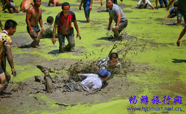 这场池塘大战吸引了寨子里很多的青壮年来参加,这个池塘的有趣之处就在于它布满了青苔,池水经大家一顿搅合也变得浑浊不堪,根本看不到有没有鱼,全靠“摸”,哪个地方发现了鱼的踪迹,一大堆人就扑向那里,场面颇为壮观!