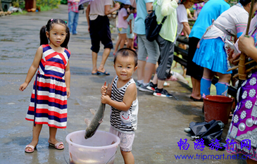 看,娃儿们高兴地守着自己家的战利品,晚上有鱼吃啦!