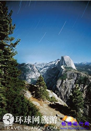317英尺的山脉折射出同轴的彩虹,异常壮观,如果再往上走,你会看到默塞德河沿着花岗麻岩的穹丘顺流而下。