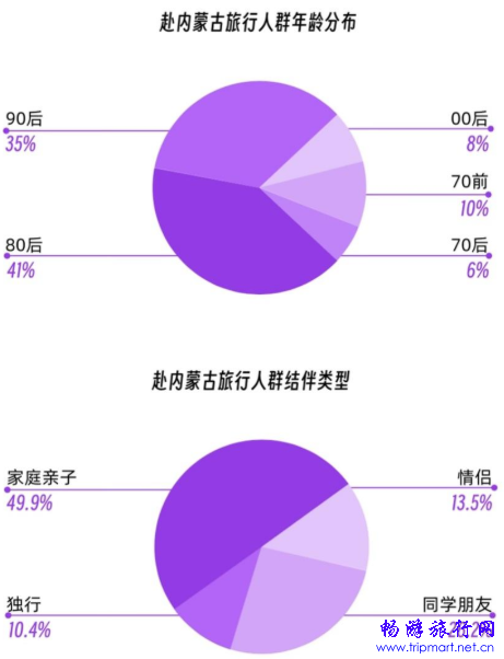 以京津为主的北方地区是内蒙古的主要客源地,北京以52.1%的占比稳居榜首。值得关注的是,南方城市游客对大草原的热情并没有被距离所影响,上海、广州、成都、深圳、重庆、杭州六大南方城市位列赴内蒙古旅行客源城市前十,抵达内蒙古后再租车自驾,或参与当地游小团是他们游览内蒙古的主要方式。