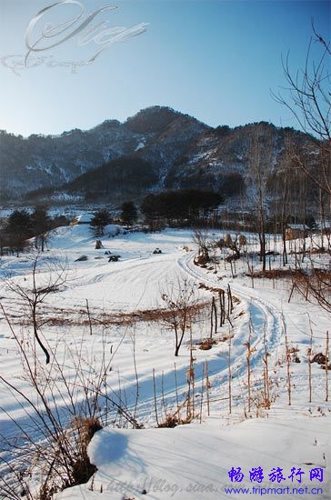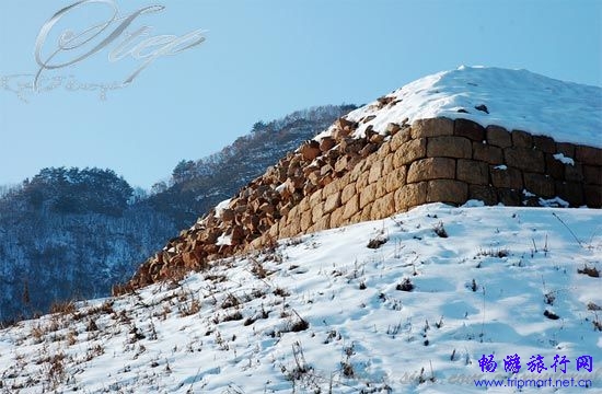 雪地里的车碾印记留在风景秀丽的高句丽古城遗址之上。品味历史,体验自然,这就是丸都山城的魅力所在。