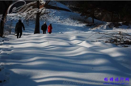 第一次跟白茫茫的世界亲密接触,在雪地里面行走的感觉和与雪山的接触感觉是不同的。我的脚步开始变慢了,相机开始开动。雪地里的树影随着波浪起伏的雪地而起伏,优美动人光影曲线,是大自然的恩赐。