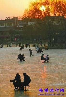 气温持续下降 北京什刹海“开溜”(图)