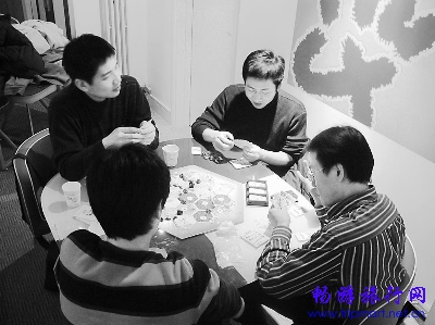 桌游吧里既没有酒吧的灯红酒绿,也没有网吧的乌烟瘴气,房间大多装修精致,放一些轻柔的音乐,舒适的环境给城市人带来别样的休闲享受。据了解,如今北京的专业桌游吧有十几家,随着桌游玩家越来越多,桌游吧也着实“火”了一把。位于崇文门新世界商场附近的“四分之一桌游吧”就是其中一家,一室一厅的房间一共容纳了三十多位客人。玩家们几人围坐一张桌,手里拿着各式各样的纸牌道具,有人悠闲品着茶,不时露出一丝笑容;有人呈观望状,一会看看手中的牌,一会瞟一眼桌面;也有人边玩边聊。