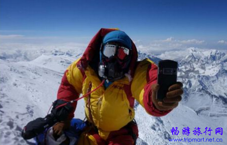 宋玉江手持8848钛金手机在珠峰之巅完成海拔最高的自拍