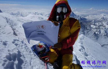 8848钛金手机品牌旗帜在珠峰之巅迎风飞扬