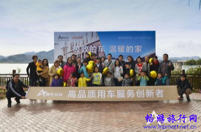 幸运家庭乘坐极车公社提供的车辆前往金海湖
