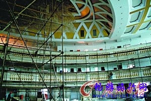 正在装修的大楼内部,栏杆都用金箔包成。